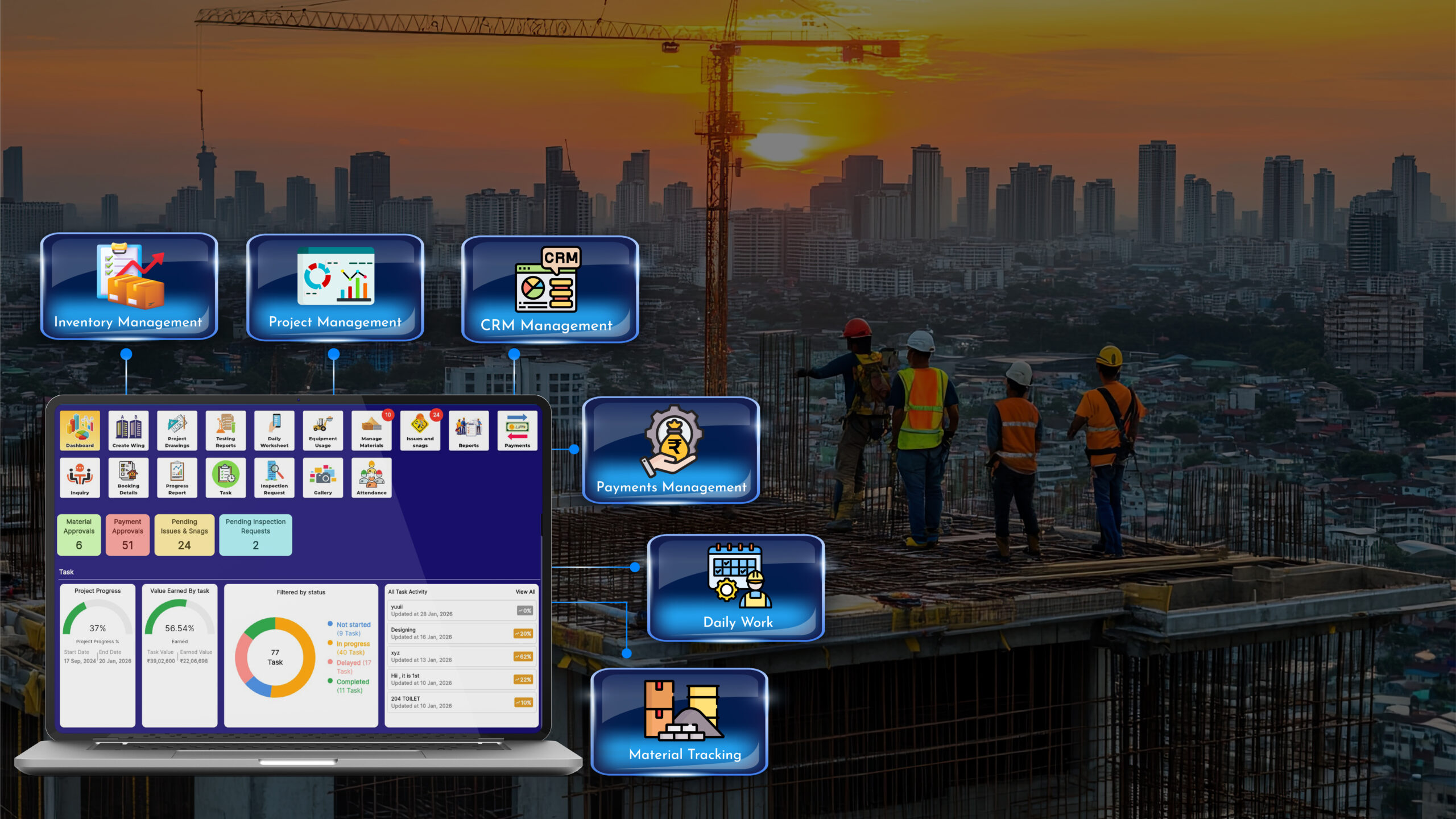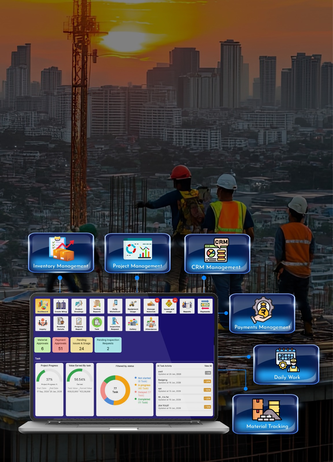 Our Task Management feature allows you to assign tasks, set priorities, and monitor progress efficiently while managing work quantities and labour. Track real-time work updates, and resources used for specific tasks and define clear deadlines. With notification for updates and detailed tracking, you can ensure accountability, prevent delays, and streamline project execution